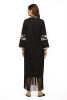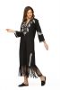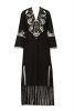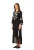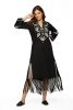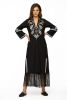 Fabric-fine popline-kaftan dress-full sleeves-side pockets-slits in front hem and slit at armhole front and fringe hem. V neck with hand embroidery detail-full sleeves-dryclean only