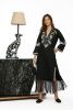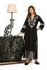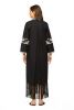 Slim kaftan dress with fringe hem and hand embroidery-inverted pleat at back.Full sleeves .Handcrafted embroidery detail on treated drape finish cotton popline