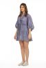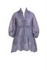 Short dress w/ ruffled collar, puff sleeves with lace &pleat detail on front-slip on dress. Comes with cotton slip