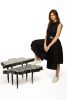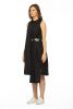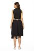 Fabric -fine popline - asymmetric pleated shirt dress with collar and halter cut sleeves.Side pockets and tie belt-belt with hand embroidery. Front open-dryclean only