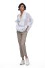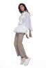Pelum top with double scallop hem. Deep ruffle collar and puff sleeves