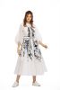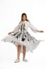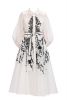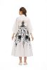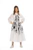 Fabric custom blend cotton/poly/silk -flared shirt dress with tie belt- tonal embroidery with embossed affect-lace insert at waist- puff sleeves - collar dryclean only