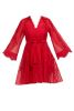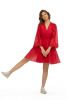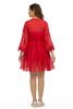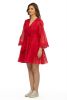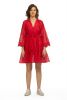 Fabric custom blend cotton/poly/silk -short dress with circular skirt-bell sleeves with lace trim- lined dress-v neck -dryclean only