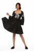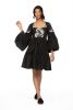 Short flirty tier dress with side pockets and flared sleeve with 3 dimensional embroidery